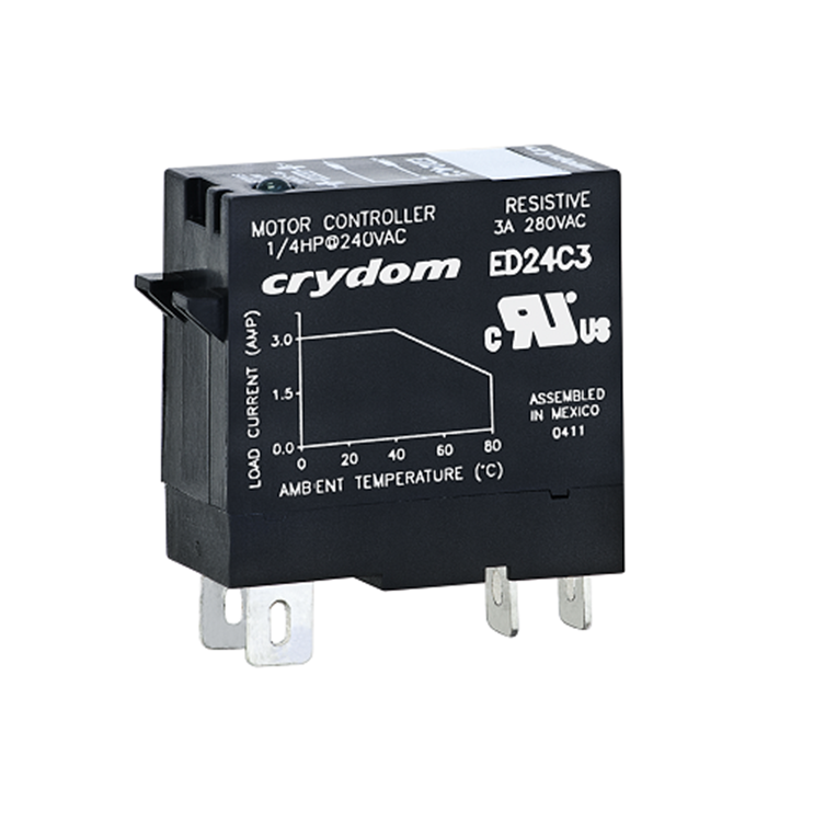 DIN rail and PCB mountable sockets compatible with ED Series plug-in SSRs. These sockets are rated for 12 Amps at 250 VAC/DC, and they are UL Recognized and CE & RoHS compliant.