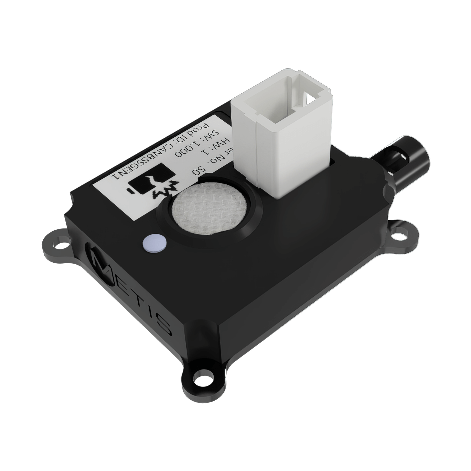 The unit features a low power mode in which it monitors the environment but does not transmit on CAN unless a threshold is reached; at which point it reverts to normal mode. It also features a low side drive function pin capable of 500mA that can be triggered if a programmable threshold is breached.